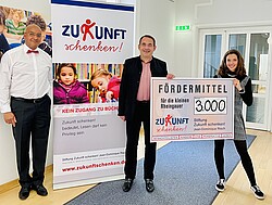 Wir freuen uns über die Anerkennung für unsere neues Angebot zur Leseförderung durch das Hessische Kultusministerium, das uns die Umsetzung an einer weiteren - der dritten - Grundschule ermöglicht. Herr Staatsminister Prof. Dr. R.A. Lorz nahm sich persönlich Zeit, um die Fördermittel an uns zu übergeben. (10.2021)
